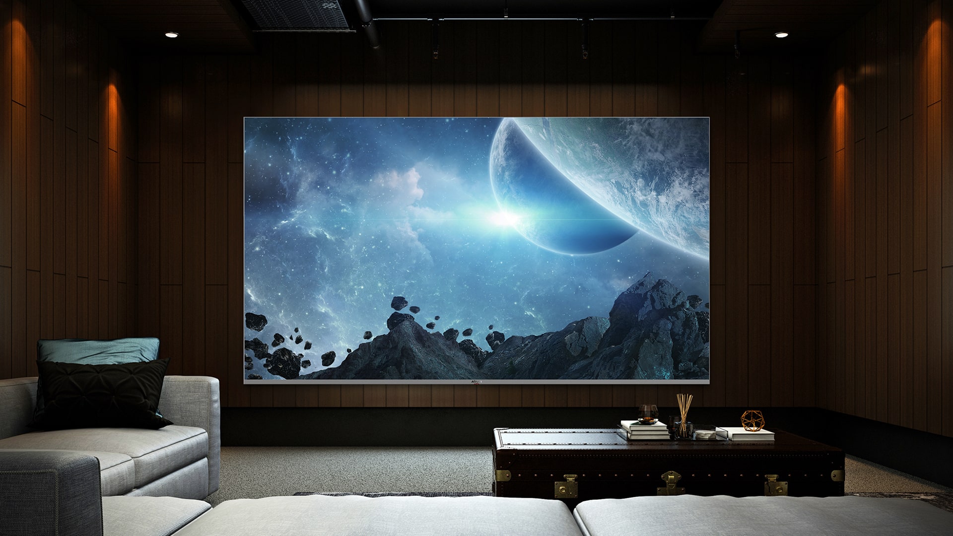 Available in three sizes, the 136",163" and 216",the mega-size display delivers the ultimate home theater experience. With four times the resolution of 1080p, the 4K display brings images into striking clarity